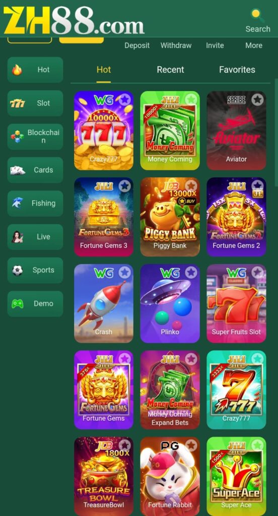 ZH88 Game App most trending game or live dealer, excellent jackpot, real cash, machine games and best betting games for earning users in Pakistan…
